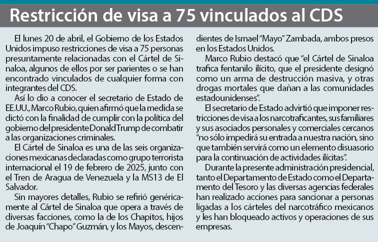 Estas acciones de inteligencia y gabinete por parte de la Oficina de Control de Activos Extranjeros (OFAC), dependiente del Departamento del Tesoro estadounidense, son independientes de las acciones operativas que en México se han emprendido para localizar y capturar a los hermanos Iván Archivaldo y Jesús Alfredo Guzmán Salazar, hijos del narcotraficante Joaquín “Chapo” Guzmán Loera, líderes del grupo en mención, que en todos los niveles ha sufrido bajas importantes que debilitan su estructura desde 2023, cuando fue detenido Ovidio Guzmán López, el Ratón, en Sinaloa.