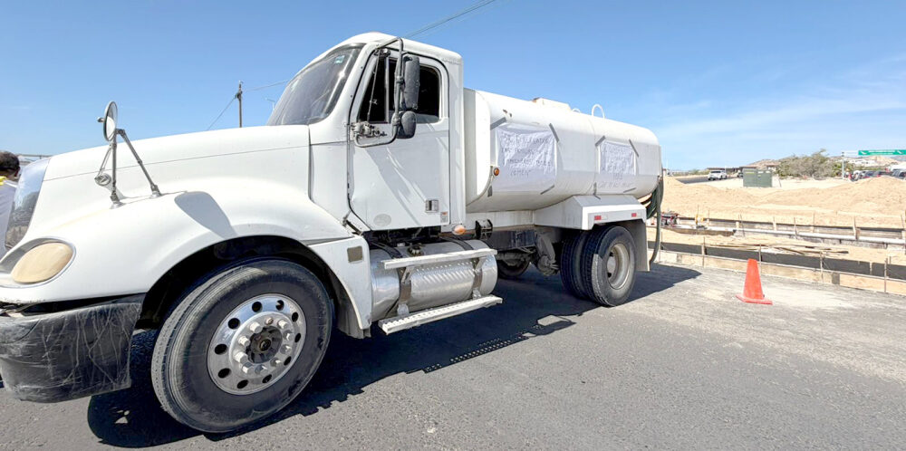 Desde 2025, los transportistas trabajan trasladando material para la obra del paso a desnivel en la Glorieta de las Mujeres Libres en Cabo San Lucas; sin embargo, dejaron de recibir sus sueldos una vez que inició este año.
