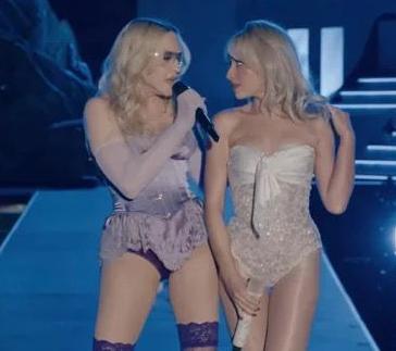 En la presentación, ambas vestidas a juego con corsets y encaje, interpretaron la canción que la revista People identificó como “I Feel So Free”, mismo que la Reina del Pop compartió en los anuncios del álbum en sus redes sociales y ahora ya está disponible en YouTube. El concierto continuó con “Juno”, “Like a Prayer” y “Vogue”.