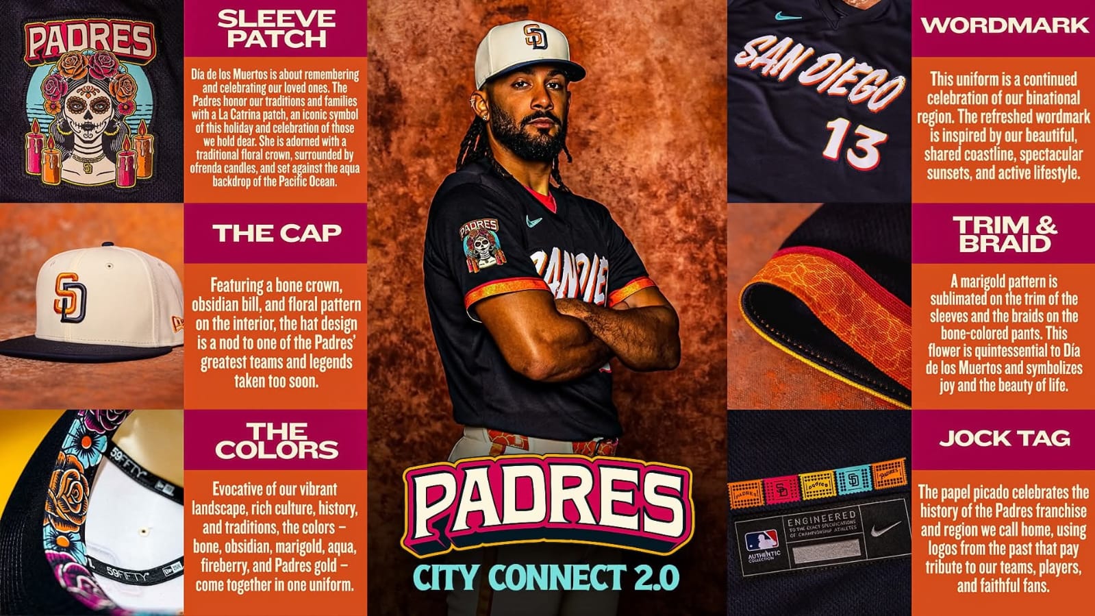 La nueva gama de artículos “City Connect” como camisetas, gorras y otros artículos, ya están disponibles en la tienda oficial del equipo, así como en línea. Para más información, visita www.padres.com/cityconnect.