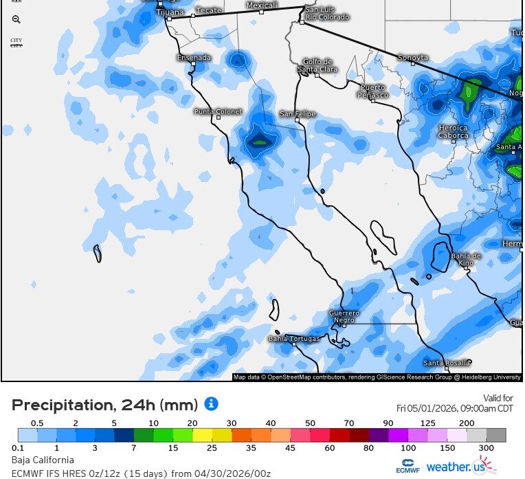 La Coordinación Estatal de Protección Civil (CEPC) informó que este jueves 30 de abril se prevén lluvias aisladas y vientos fuertes en diversas zonas de Baja California, por lo que exhortó a la población a tomar medidas preventivas.