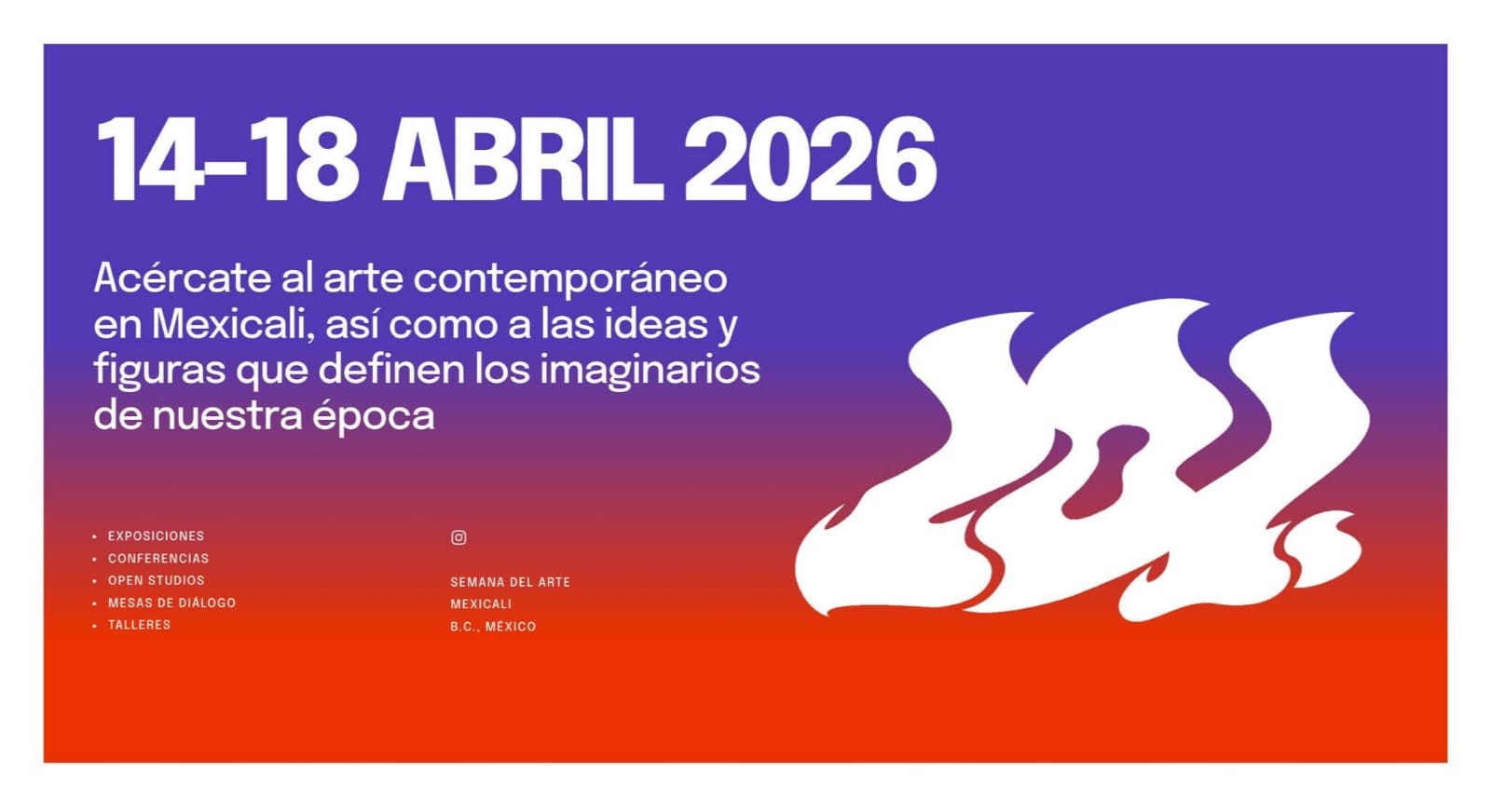 “El programa de actividades de la Semana del Artes en Mexicali está diseñado para compartir experiencias, conceptos y herramientas que estimulen la apreciación del arte actual y pensamiento crítico sobre la cultura contemporánea. Si bien el enfoque de las actividades es la escena artística mexicalense, el programa también invita a reconocidos creadores del estado, del país y del exterior a participar. Su participación involucra exponer ideas que enriquezcan las perspectivas culturales en la región, seguramente detonando conversaciones —a corto y largo plazo— sobre arte, vida y sociedad”, emitieron los organizadores.