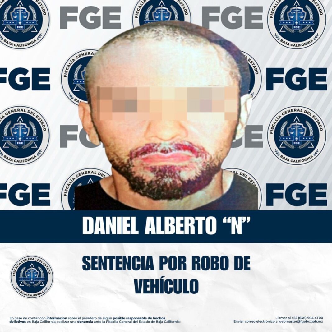 Este sábado 25 de abril la Unidad de Investigación Especializada en Robo de Vehículos, adscrita a la Fiscalía Regional de Tijuana, informó que obtuvo una sentencia condenatoria en contra de Daniel Alberto “N”, por el robo de un vehículo.