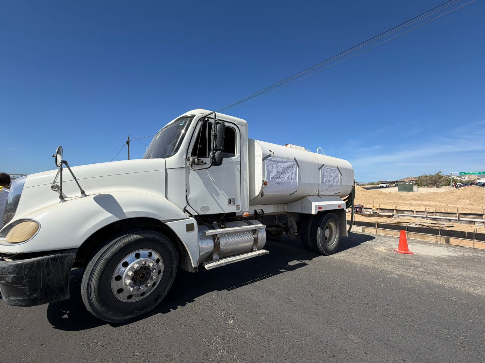 Camioneros protestan por adeudos en obra de paso a desnivel de Cabo San Lucas