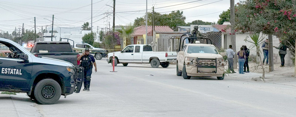Pero no ha sido el único, pues a las 4:35 de la tarde del pasado 19 de marzo en la colonia Solidaridad, en Guerrero Negro, también hubo reporte por detonaciones de arma de fuego; el sitio fue en las calles Sergio Noyola y Pablo L. Martínez, donde elementos de seguridad localizaron a un hombre sin vida, cuyo cuerpo presentaba lesiones producidas por impactos de bala.